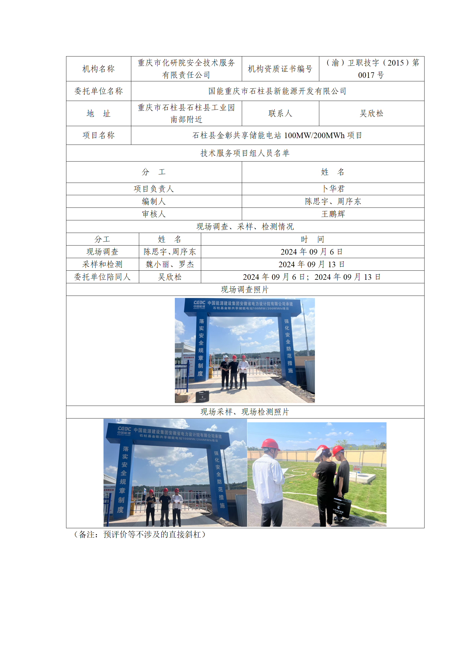 国能重庆市石柱县新能源开发有限公司石柱县金彰共享储能电站100MW/200MWh项目职业病危害控制效果评价报告