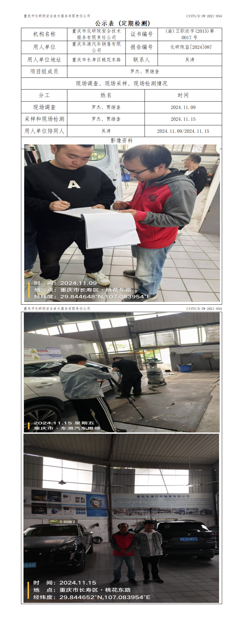 重庆车港汽车销售有限公司定期检测