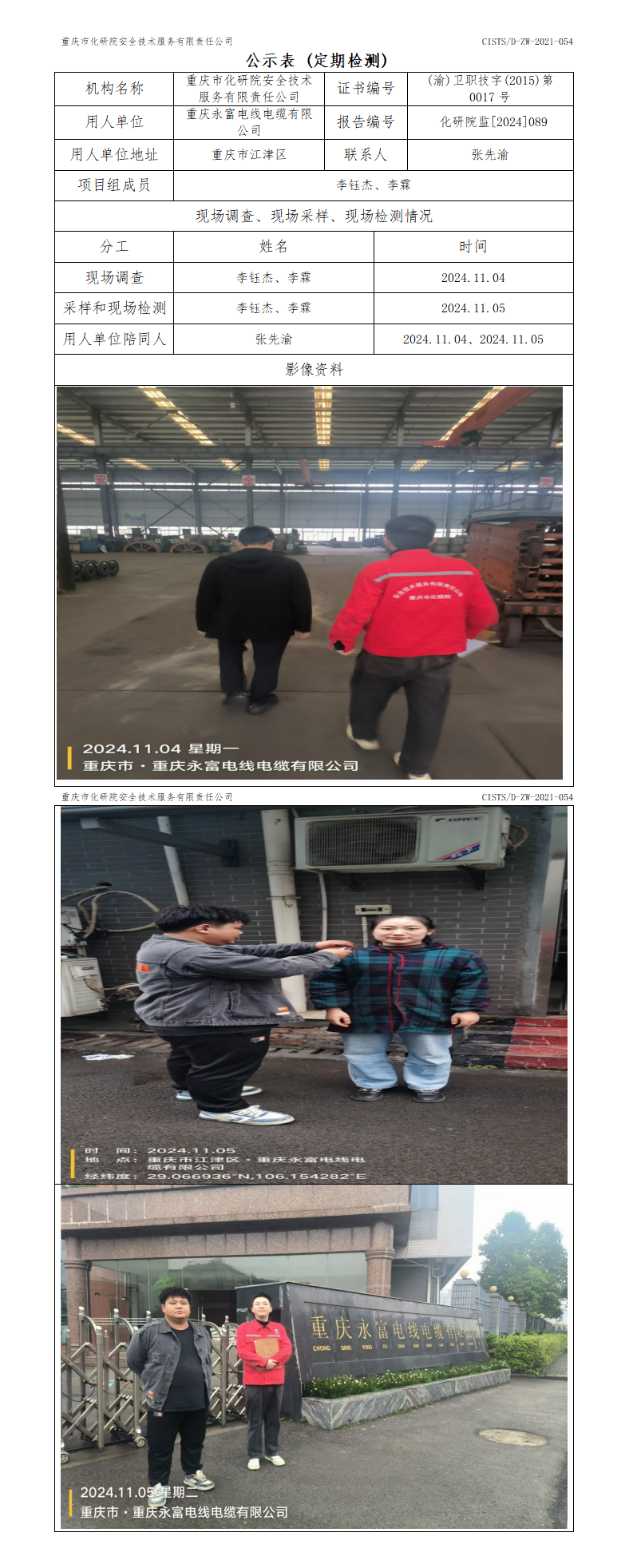 重庆永富电线电缆有限公司定期检测
