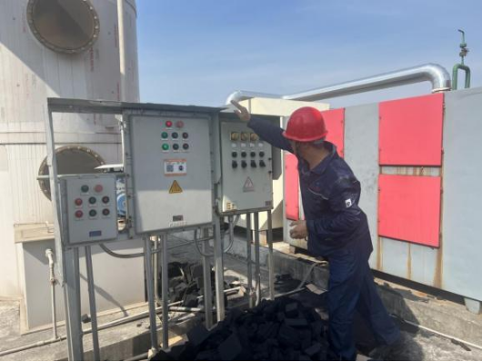 车间酷似蒸笼,一线员工相互配合,紧密协作,保质保量完成各类生产任务;室外艳阳高照,叉车司机顶着烈日来回转运各类物资,保障生产所需;天台热浪滚滚,维修人员即使汗流浃背也依然坚守岗位,按时按点开展巡查巡检工作,确保生产装置安稳长满优运行。