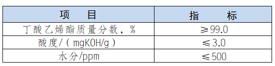 符合重庆彩德网《丁酸乙烯酯技术要求》(Q/ CHY-17 )。