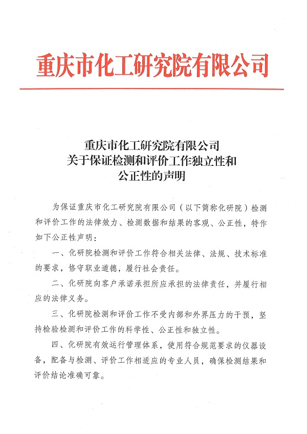 关于保证检测和评价工作独立性和公正性的声明