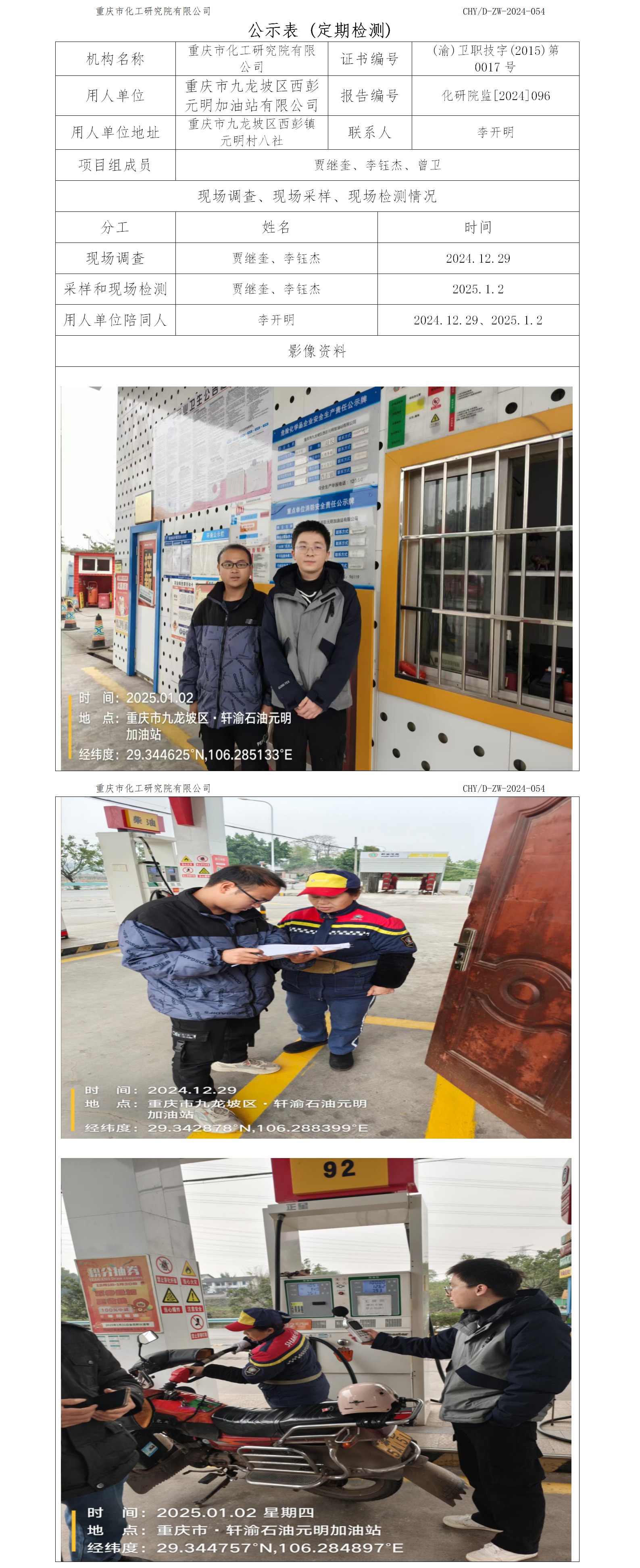 重庆市九龙坡区西彭元明加油站有限公司定期检测
